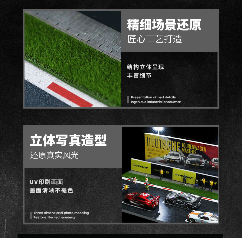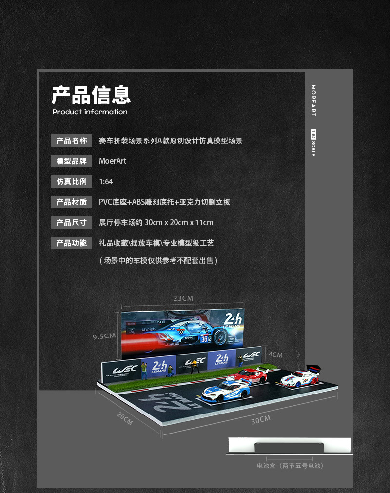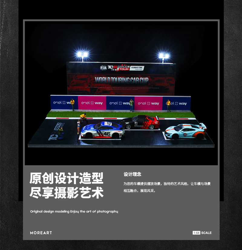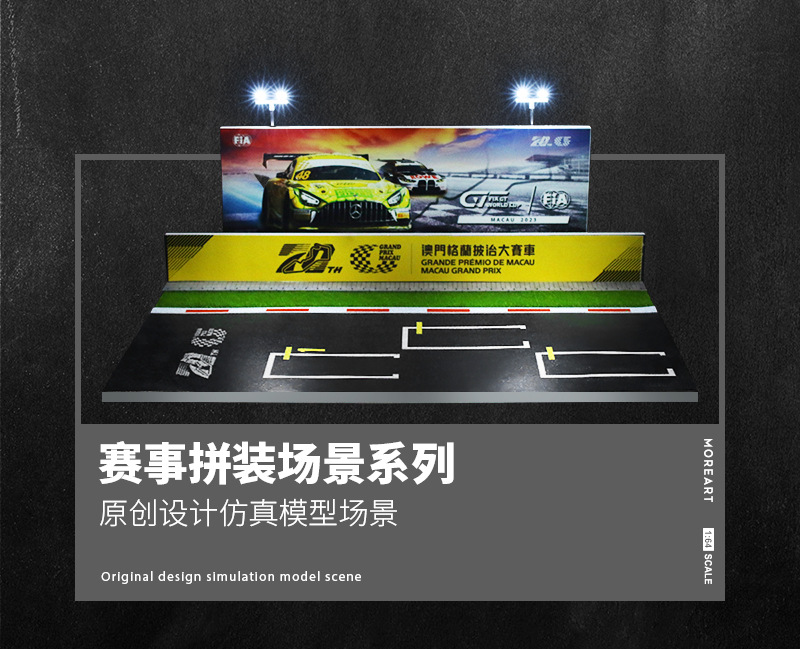 匯藝MoreArt1:64 勒芒帶燈光賽車拼裝場景系列模型