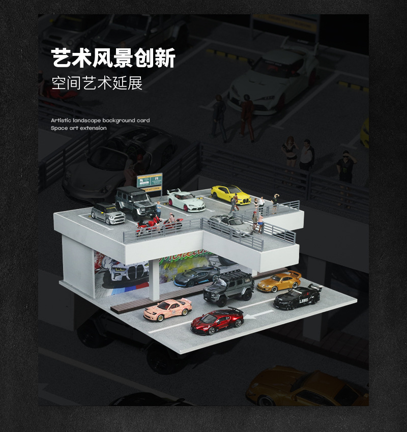 匯藝MoreArt1:64 雙層圍欄露天停車場 仿真模型 禮品擺件