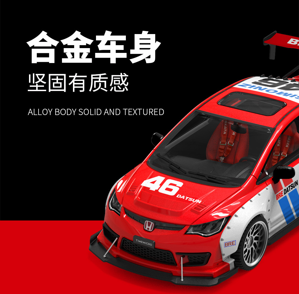 時光TimeMicro1:64 本田思域爆改達特桑和樂富門仿真合金汽車模型
