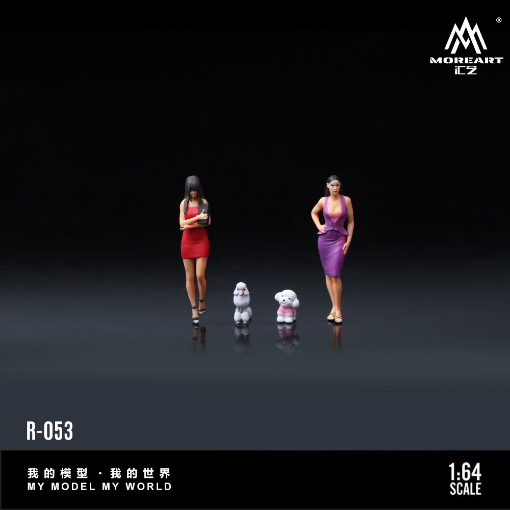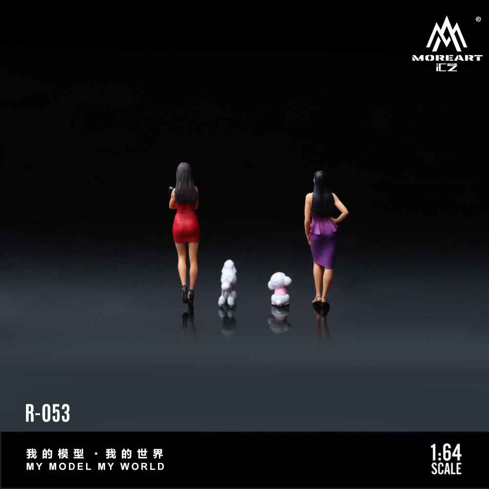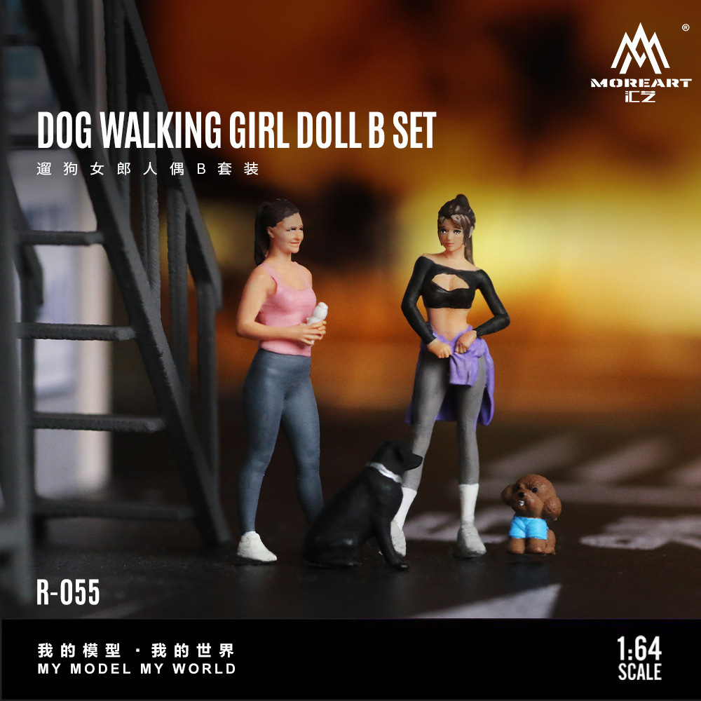 MoreArt1:64 遛狗女郎人偶套裝仿真樹脂模型