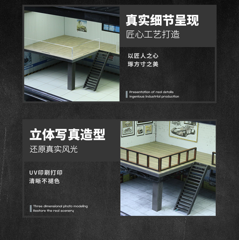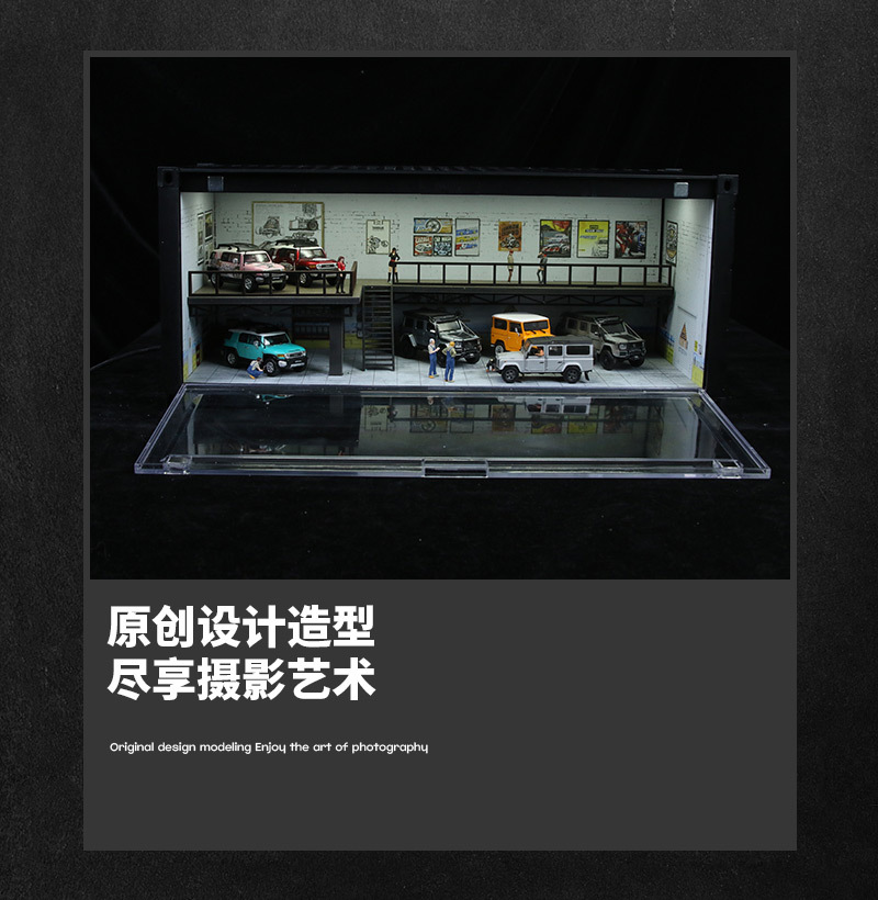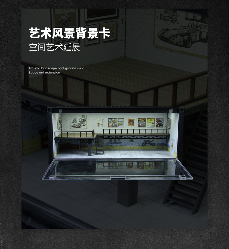 匯藝MoreArt 集裝箱維修店場景仿真模型 帶燈光 停車場