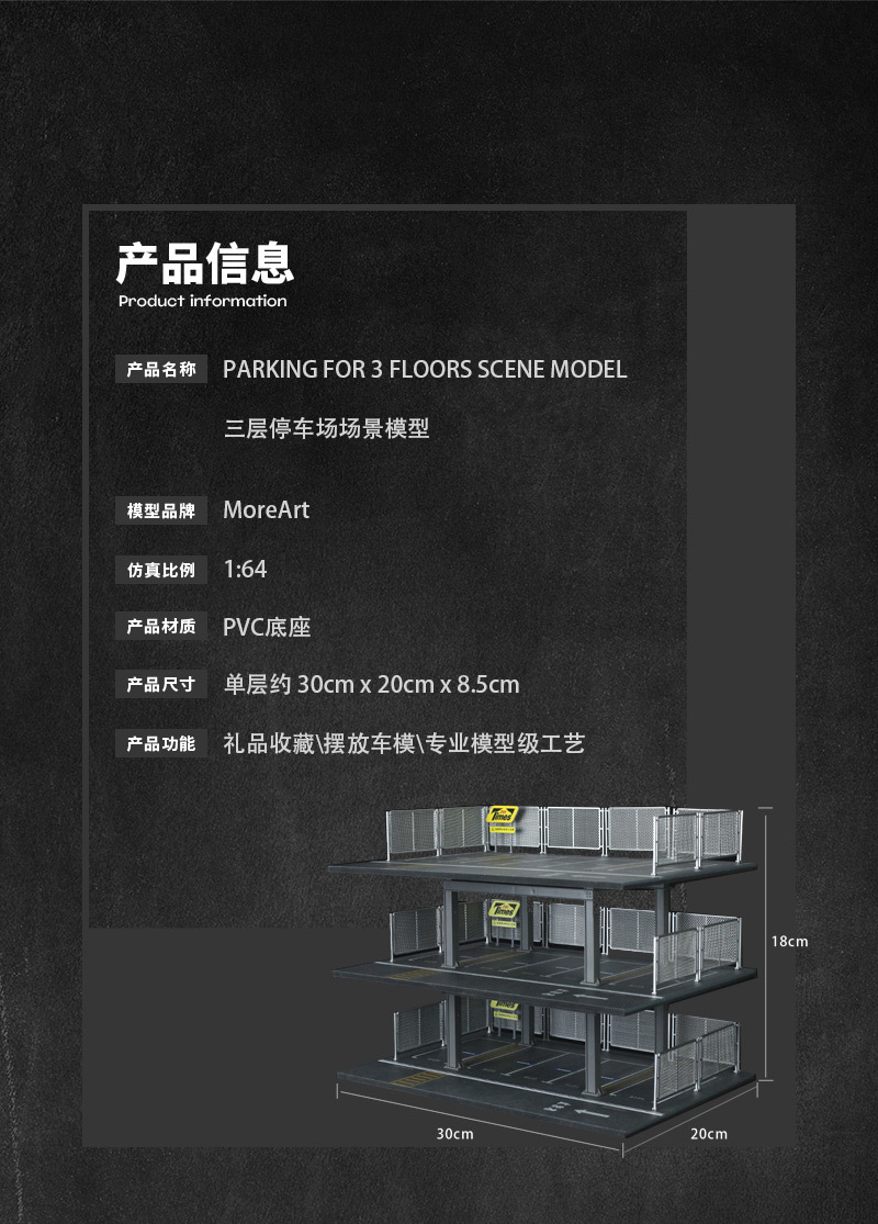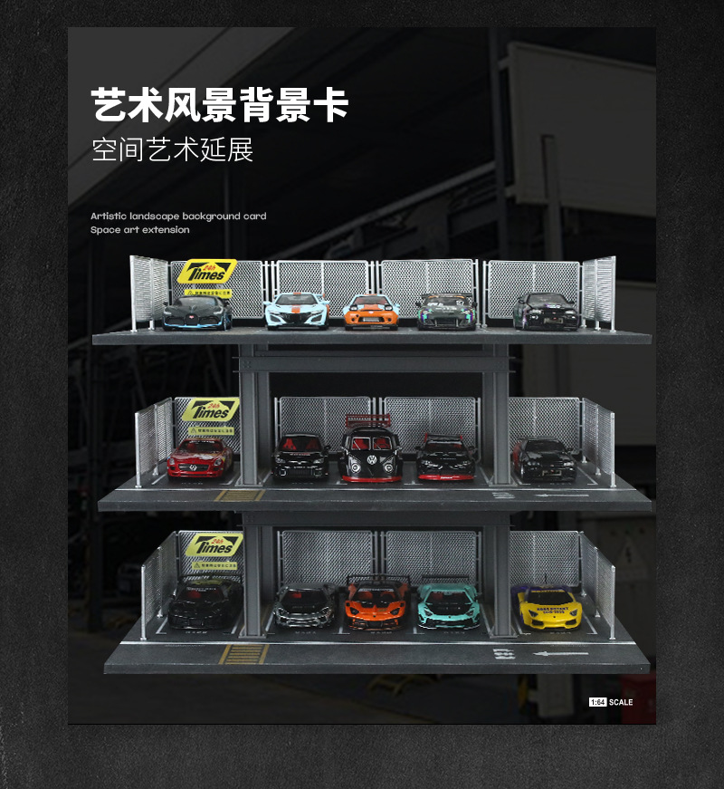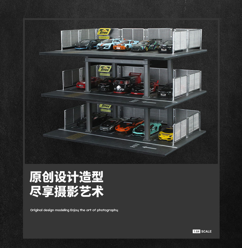 匯藝MoreArt1:64 三層停車場場景仿真模型 收藏禮品擺件